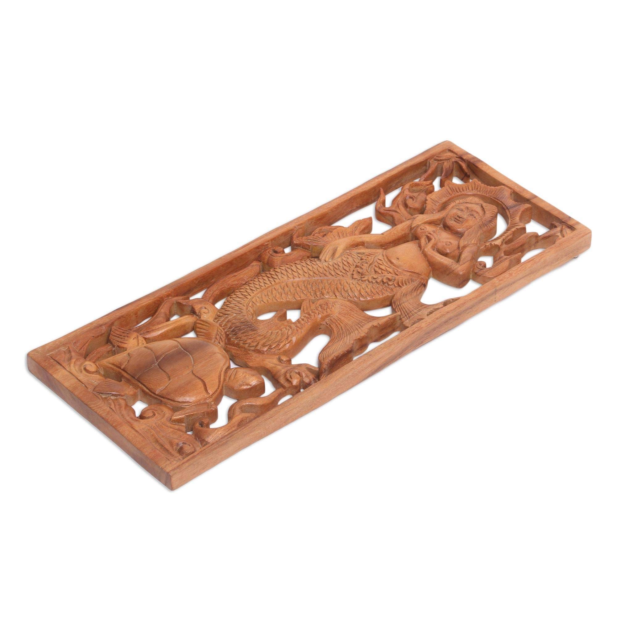 Amazon Com Novica Large Wood Mermaid Relief Panel Wall Sculpture Brown Sea Queen Home Kitchen